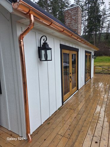 This unique gutter profile is reminiscent of the early days of rain gutters. This style is especially good for fascia that is not the standard vertical cut. Available in copper, steel, and aluminum, with exposed "under-the-gutter" hangers, or the typical hidden hangers.